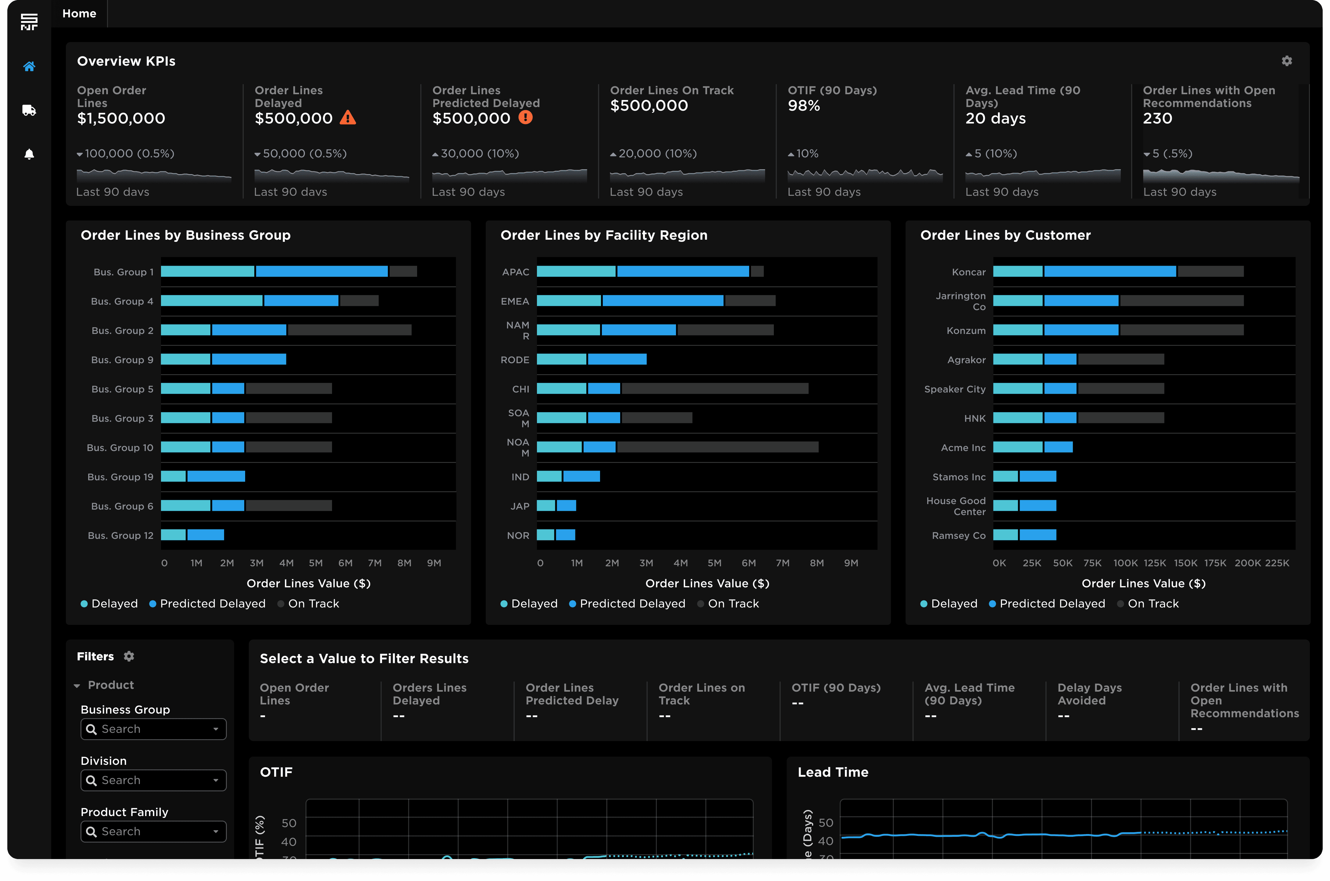 I designed an AI dashboard that predicts supply chain disruptions and recommends proactive actions. The solution improved on-time delivery by up to 10%, raised product availability by 6%, and helped clients detect late orders 90 days earlier, driving $9M in added operating income.