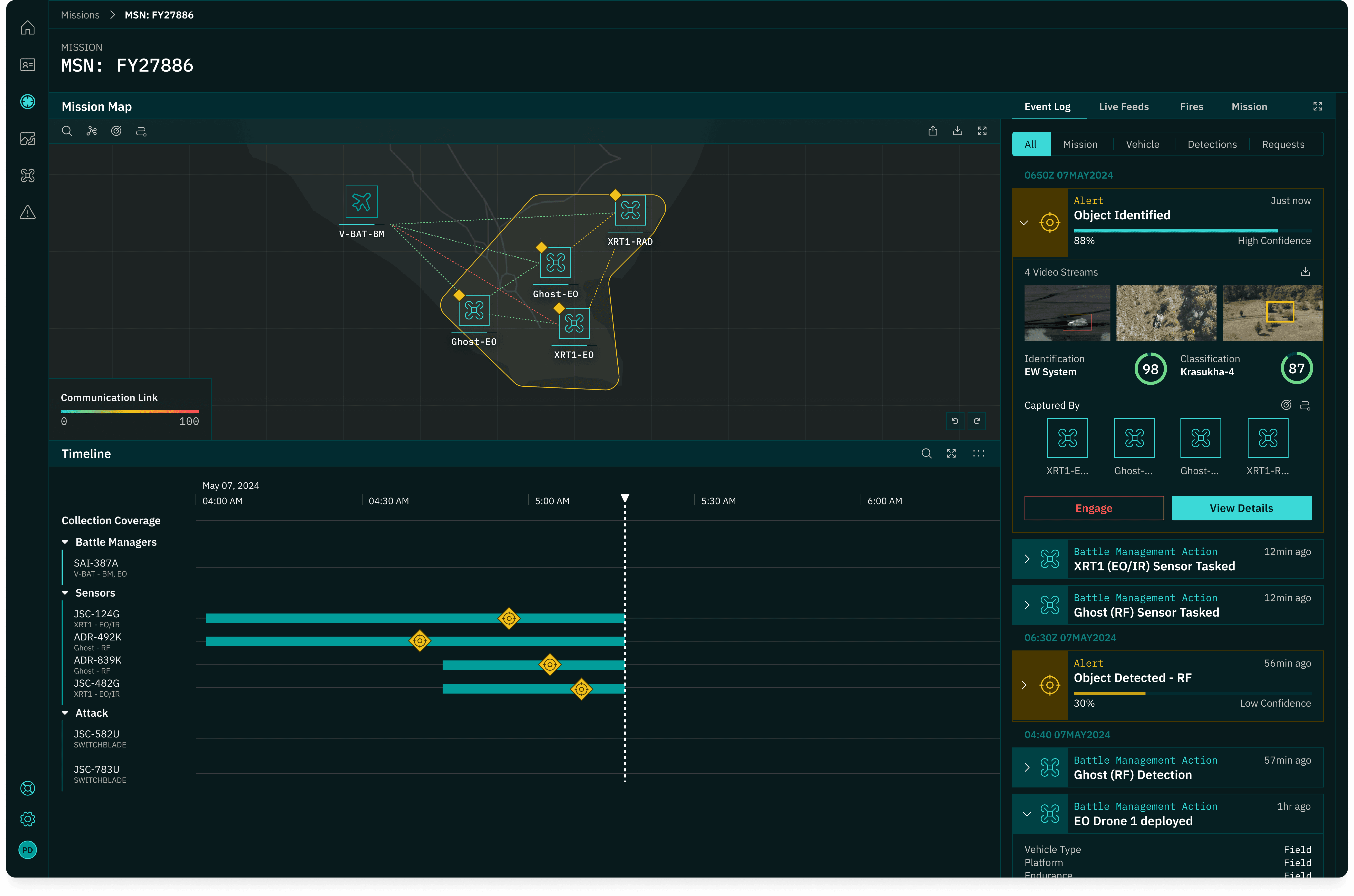 As part of a stealth-stage drone startup, I designed an integrated COP that visualized geo-spatial and temporal data from drone fleets in real time. My work enabled mission teams to track assets, commands, and events in concert—providing clarity and actionable insight in highly dynamic environments.